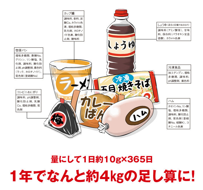 現代人は一年間に添加物を4kgも、それ以上も摂取しているとも言われます。