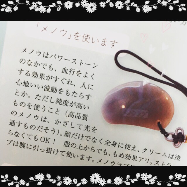 当店で扱っておりますショウキストーンもメノウ石で出来ています!「メノウ」のパワーについての紹介もありましたので、一緒にご覧ください\(^o^)/(P198)