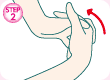 人差し指と親指の付け根部分をつまみ、気持ちいいと感じる場所をやさしく押してマッサージ。