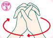 図のようにクロスした両手を、手首だけでぐるぐると回して指をリラックスさせます。