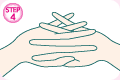 クロスした指と手をひっくり返して伸ばします。指先まで血のめぐりを良くします。