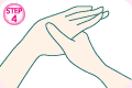 たっぷりのハンドクリームを手のひらで伸ばし温めます。 (ハンドクリームの伸びを良くするため)